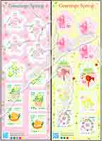 春季问候系列,花卉及草莓等2枚不干胶自贴小版(各10票)