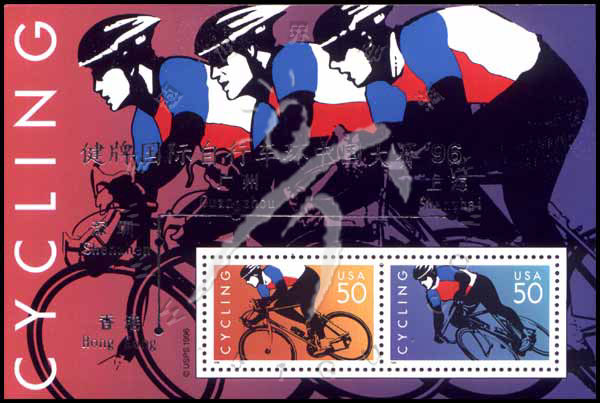自行车运动,健牌1996年国际自行车环中国大赛(比赛路线图)加盖小全张(2票)(我社已售缺)