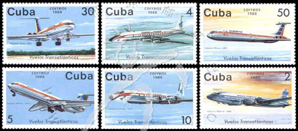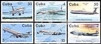 古巴远洋飞行40周年,1948年马德里-哈瓦那道格拉斯DC-4型、1961年布拉格-哈瓦那DC-7型及1972年柏林-哈瓦那IL-62型飞机等6全