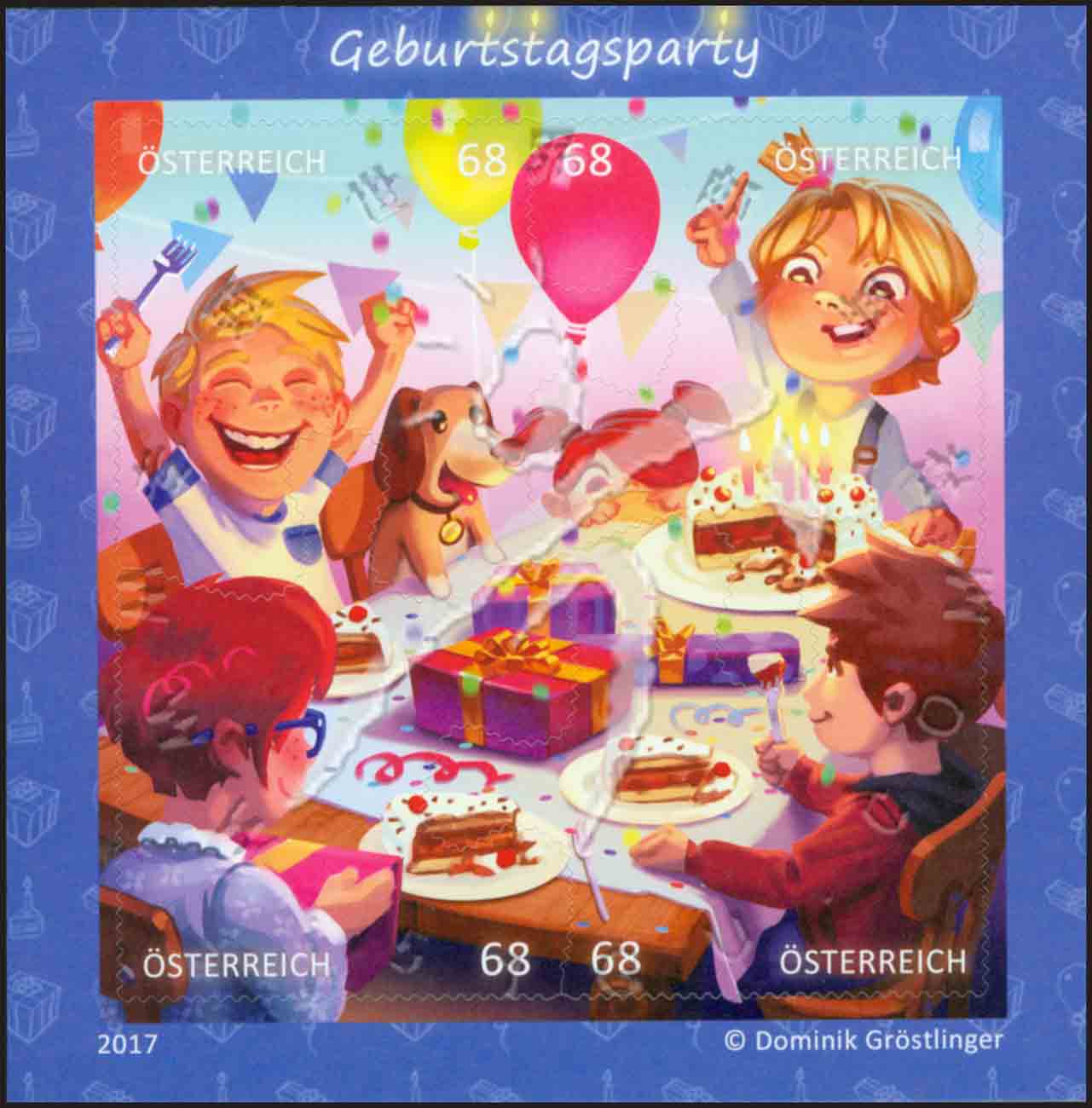 漫画系列—生日聚会,儿童一起庆祝生日场景不干胶自贴小型张