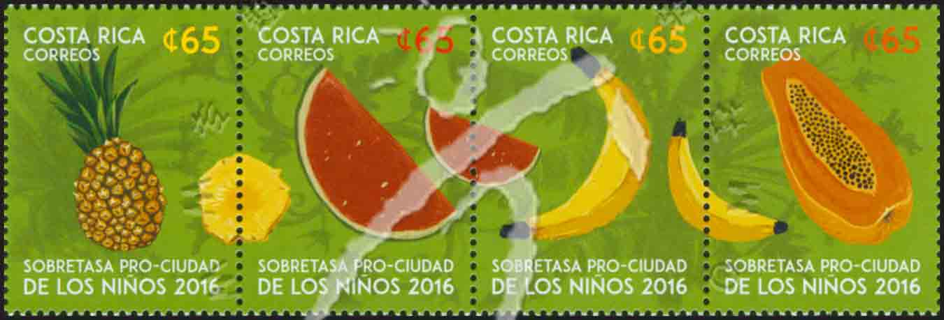 水果,菠萝、西瓜、香蕉及木瓜4联