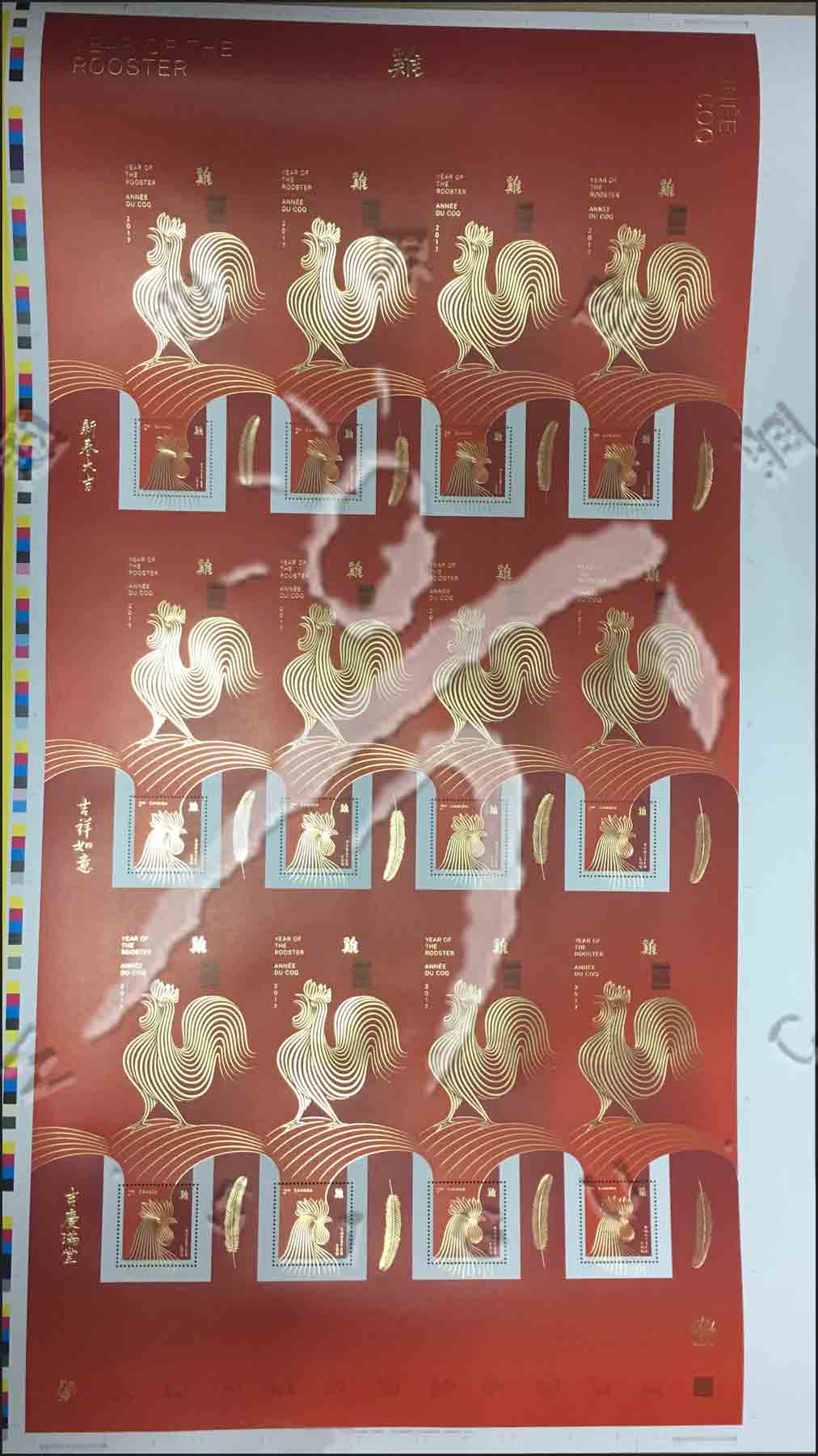 鸡年生肖,流线素描金鸡及汉字鸡小型张未切版(12枚小型张)
