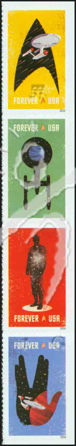 星际迷航,飞船、星空及手等不干胶自贴票4联