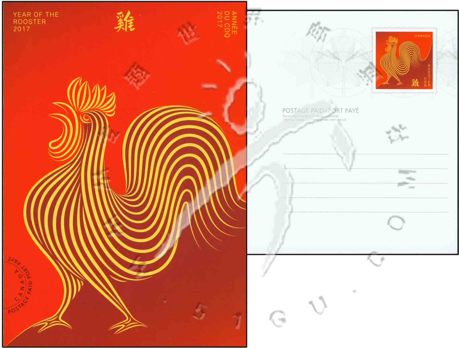鸡年生肖,流线素描金鸡及汉字鸡国内邮资版邮资片1全
