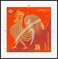 鸡年生肖,流线素描金鸡及汉字鸡国内邮资版不干胶自贴票1全