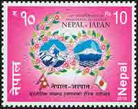 尼泊尔与日本建交60周年,富士山、国旗及花卉组成的数字60等1全