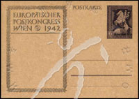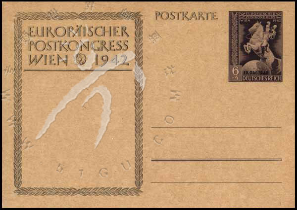 欧洲邮政代表大会,骑马的邮差、吹邮车号角的邮差在欧洲地图前等邮资片1C