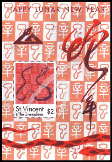 蛇年生肖,蛇、中文书法“蛇年”等小型张