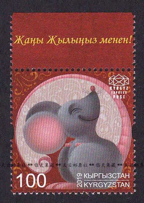 吉尔吉斯斯2020年生肖鼠邮票1枚,设计风格从原来以花纹线条形式改为今年以卡通风格来设计鼠年邮票