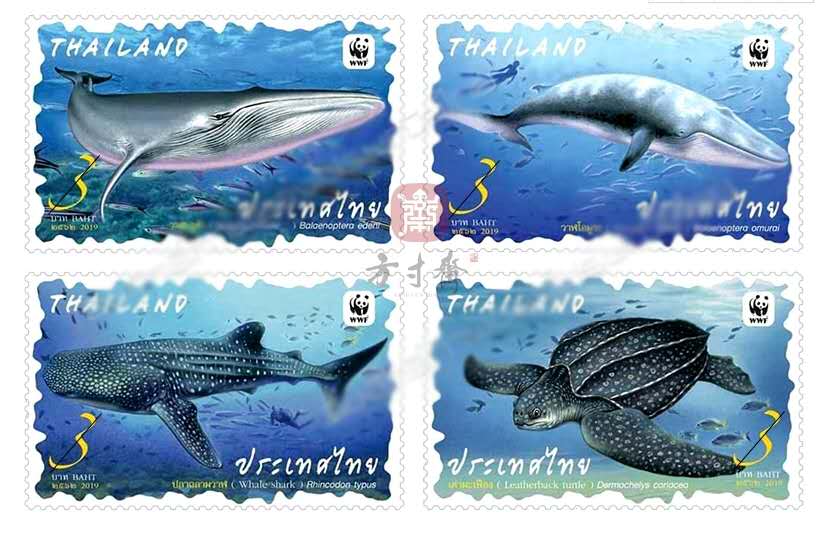 泰国2019年WWF鲸魚海龟海洋动物邮票4全