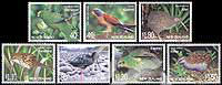 濒危鸟类,黄爪隼、黄顶鹦鹉、黑长脚鵴、蕨莺、枭鹦、几维鸟及秧鸡7全(与法国联合发行)(我社已售缺)