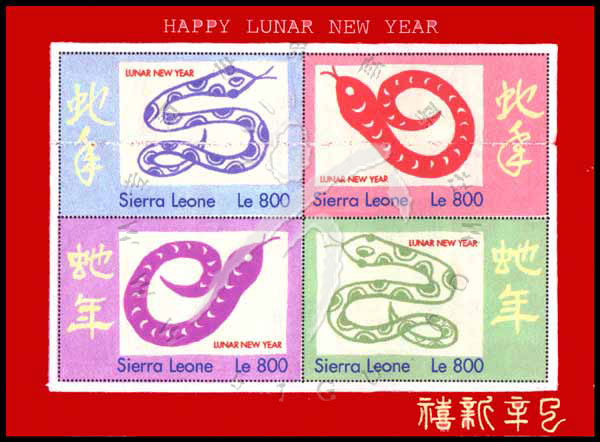 蛇年生肖,民间艺术彩蛇、中文“蛇年”小全张(4票)