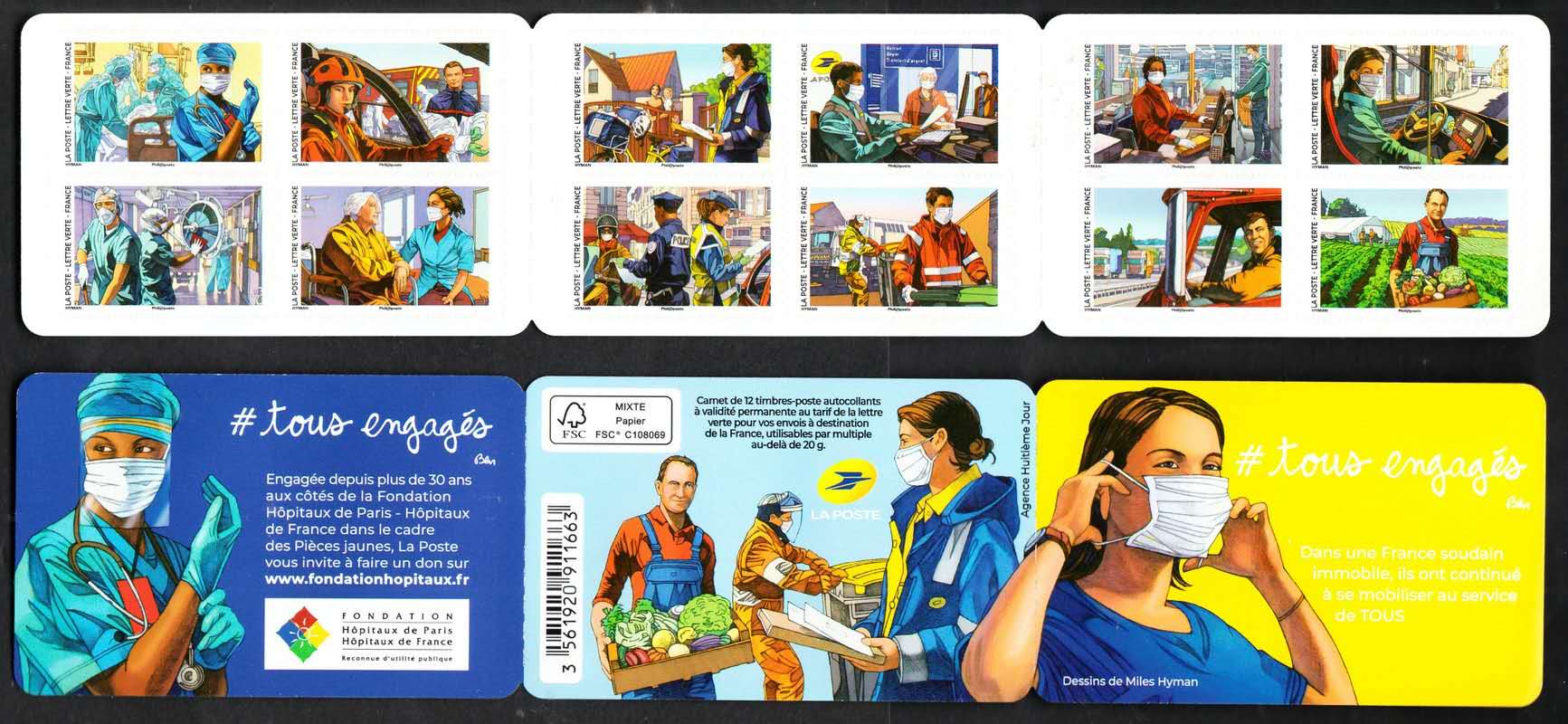 法国2020年9月11日发行(同心抗疫)邮票小本票,含邮票12枚,展现抗击新冠肺炎疫情的“平凡英雄”形象。