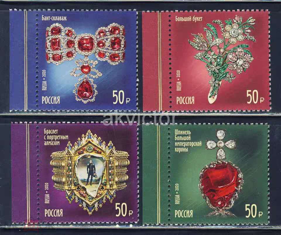 俄罗斯2020年俄罗斯国立珍宝馆100周年宝石邮票4全