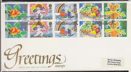 英国1989年节目问候新年,情人节,生日等(2套10票)首日实寄封