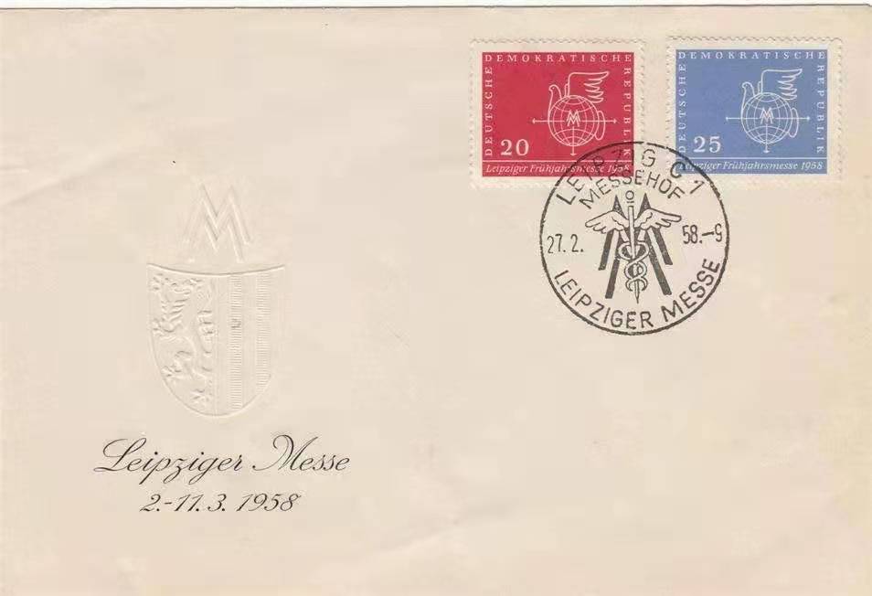 东德1958年萊比锡春季博览会—和平鸽2票全首日封