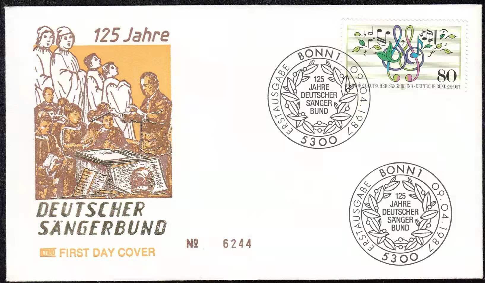 德国1987年德国音乐合唱团125周年—乐谱邮票首日封