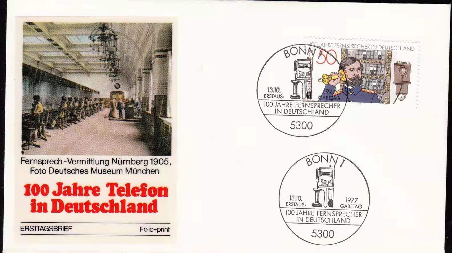 德国1977年德国电话使用百年—接线员和交換台邮票首日封