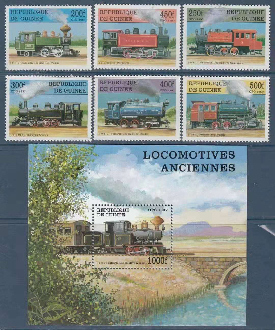 几内亚1997年发行早期火车―蒸汽机车小型张