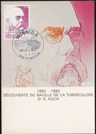 摩纳哥1982年诺贝尔奖获得者科赫发现结核杆菌百年极限片1全