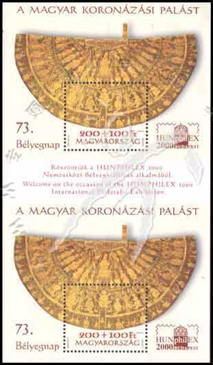 布达佩斯匈牙利世界邮展,国王加冕礼服局部及邮展徽志附捐票小全张(2票)