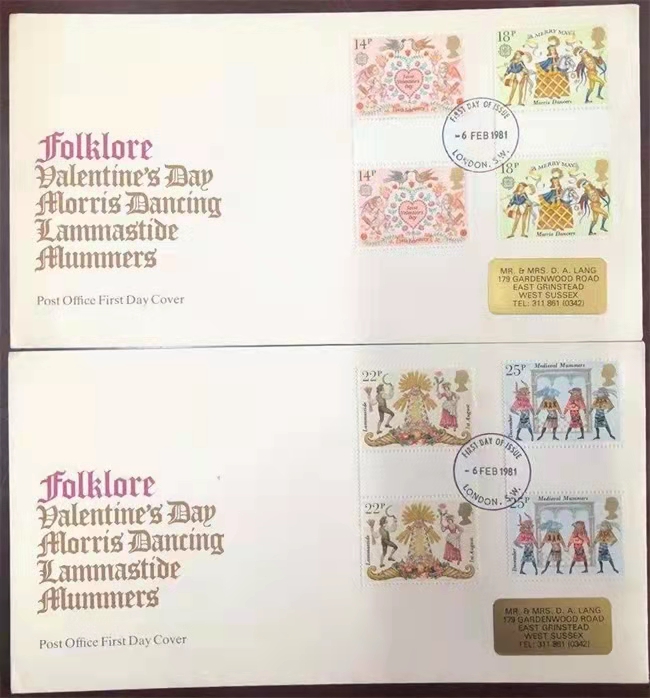 英国1981年欧罗巴―民间风俗节日等首日实寄封(2封8票全)
