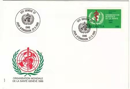 瑞士1986年世界卫生组织―公益医疗蛇杖徽志首日封