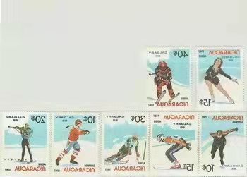尼加拉瓜1987年加拿大卡尔加里第15屆冬季奧运会滑雪,女子花样滑冰,高台跳滑,雪上射击等邮票7全