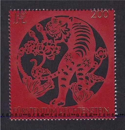 列支敦士登2022年生肖虎邮票1全釆用中国剪纸缕空工艺。