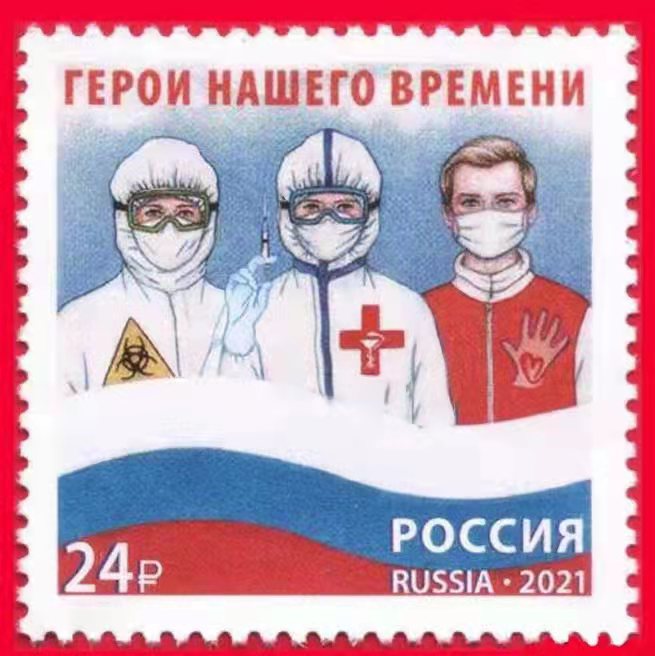 俄罗斯2021年抗击新冠病毒英雄,接种疫苗,国旗邮票1全