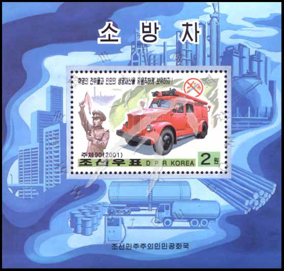 消防车,禁止烟火标志、消防车及消防员等小型张