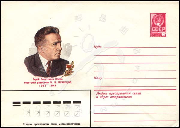 苏侦察英雄库兹涅佐夫(1911-1944)诞生70周年,肖像邮资封1全