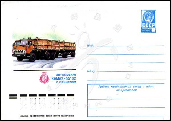 带拖车的卡玛斯---55102汽车邮资封1F