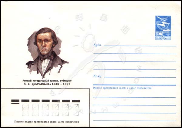 俄文学批评家杜勃罗留波夫(1836-1861),肖像邮资封1全