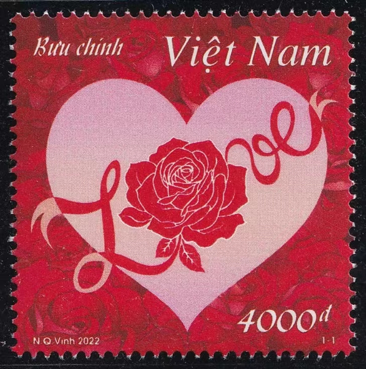 越南2022年情人节相恋邮票1全玫瑰花(注∶越南邮政己设计爱情三个阶段的系列邮票∶相识2020,相恋2022,永恒之爱2024)