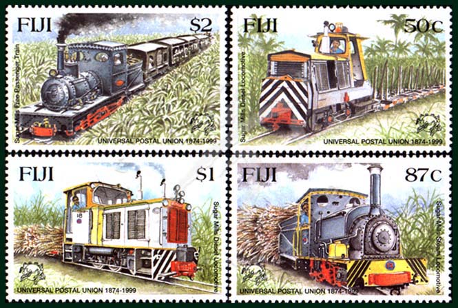 万国邮联125周年,邮联徽志及制糖厂货运火车4全
