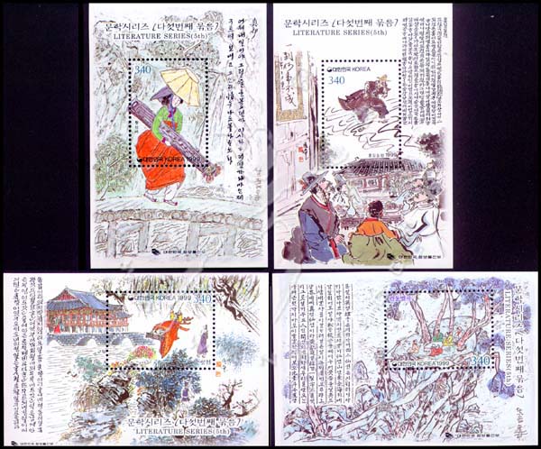 韩国文学系列五,韩国民谣kasa、韵体诗sijo、小说《Hong Kil-dong 的故事》及《Ch'unhyang 的故事》4枚小型张
