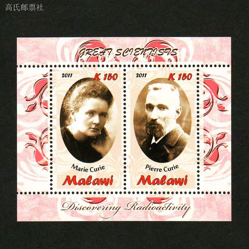 马拉维2011年伟大物理学家皮埃尔·居里,居里夫人小全张(含2票)