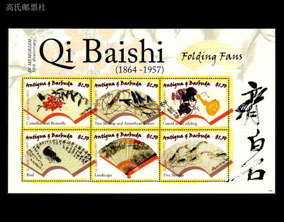 安堤瓜2007年中国名画系列邮票齐白石绘画作品扇面邮票小版张{含6票}