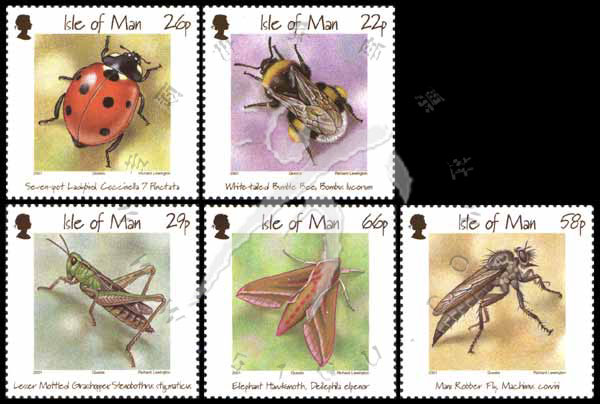 昆虫和蜜蜂,蚱蜢、马恩岛苍蝇、七星瓢虫、白尾大黄蜂、大天蛾5全