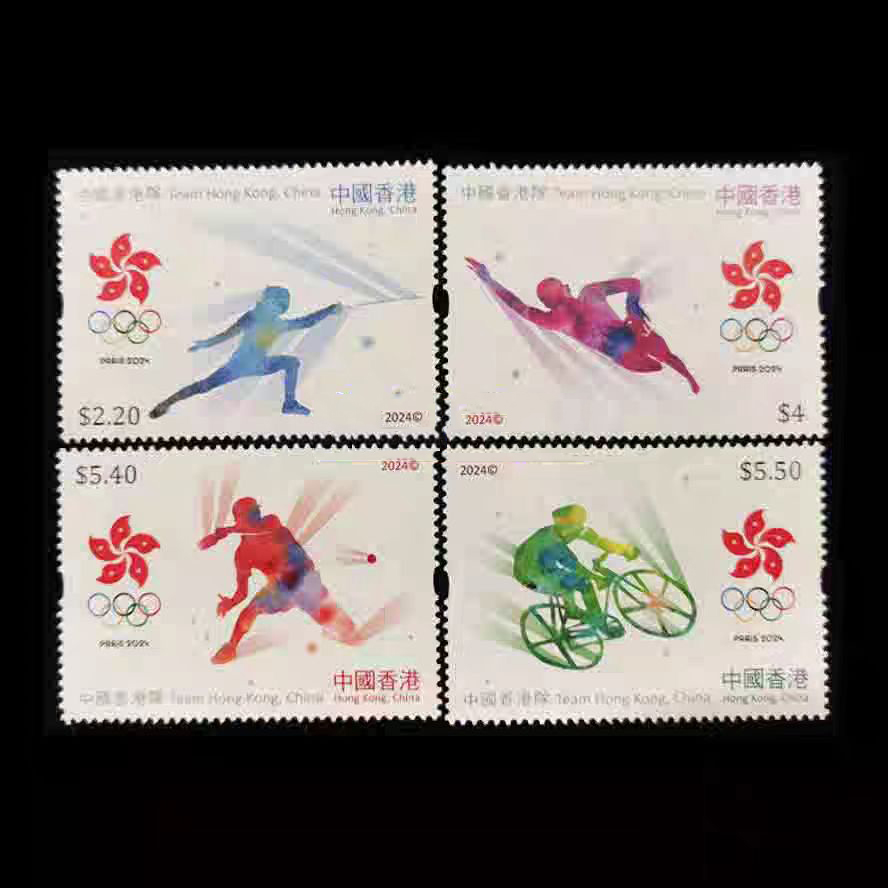香港2024年法国巴黎奥运会邮票4全自行车游泳击剑乒乓球