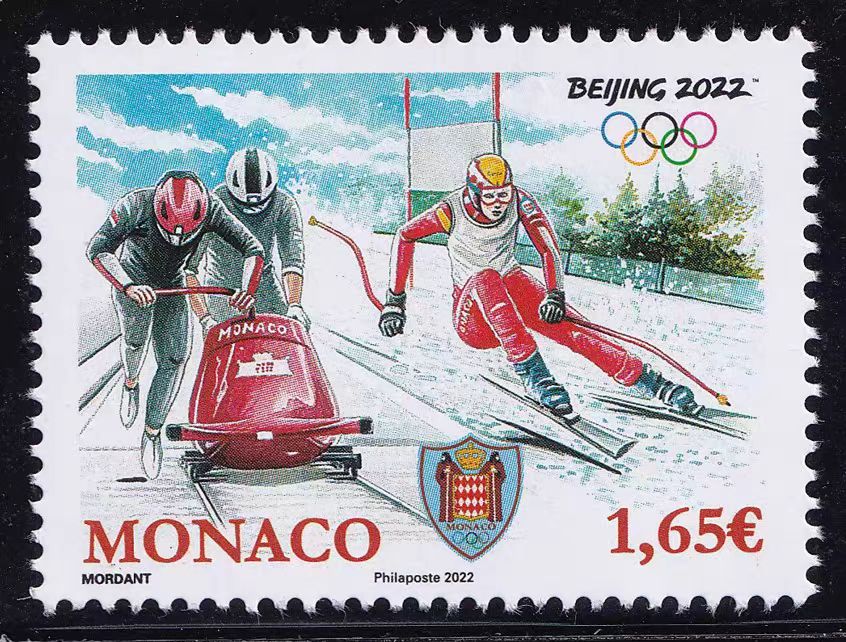 摩纳哥2022年北京冬奥会邮票1全滑雪轨道滑冰