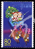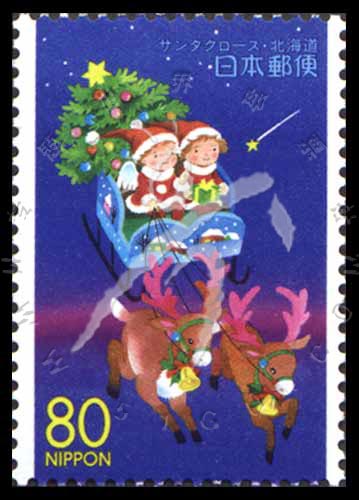 故乡邮票—北海道圣诞节,乘坐圣诞雪橇的儿童1全