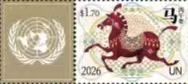 联合国2026年生肖马邮票1票十1附票(联合国徽志)