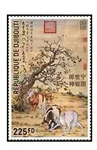 吉布堤2022年非洲6国联合发行中国书画名家郎世宁《神骏图》邮票1全