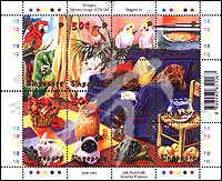 宠物全家福,家庭客厅全景图、鹦鹉、兔、乌龟、金鱼、热带鱼、狮子狗、哈巴狗、猫等小版张(10票)