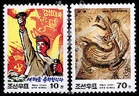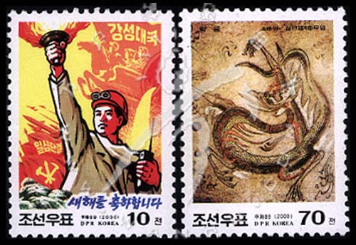 龙年生肖,古墓壁画龙和举着火炬的工人、国旗等2全