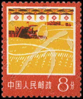 R18 农业,秋收、收割机1枚 8分