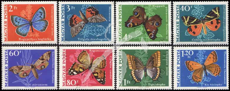 蝴蝶与蛾,灰目天蛾、苧麻赤蛱蝶、褐螯蛱蝶、红灰蝶、黑豆斑灰蝶、树苗勋绶夜蛾及孔雀翎蛱蝶等8全