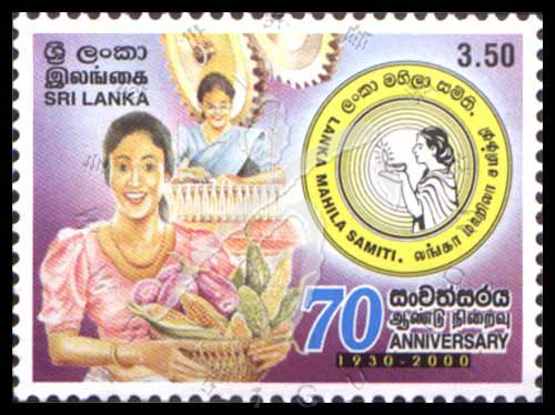 斯里兰卡Mahila Samiti 70周年纪念,徽志、齿轮、充满丰收喜悦的妇女、玉米、茄子等1全
